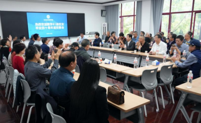 1981级校友是浙江师范学院升格为浙江师范大学后的第一届毕业生。11月8日下午,数学81级48名校友欢聚在承载青春记忆的老文科楼教室,与昔日恩师同窗重逢,追忆青葱岁月,畅谈数学学科发展,共话跨越四十载的深厚情谊。学校发展联络办(校友办)主任周红霞、学院党委副书记沈海华、学院老教师代表陈淼森、原年级辅导员孟建伟应邀出席,与校友共忆往昔。